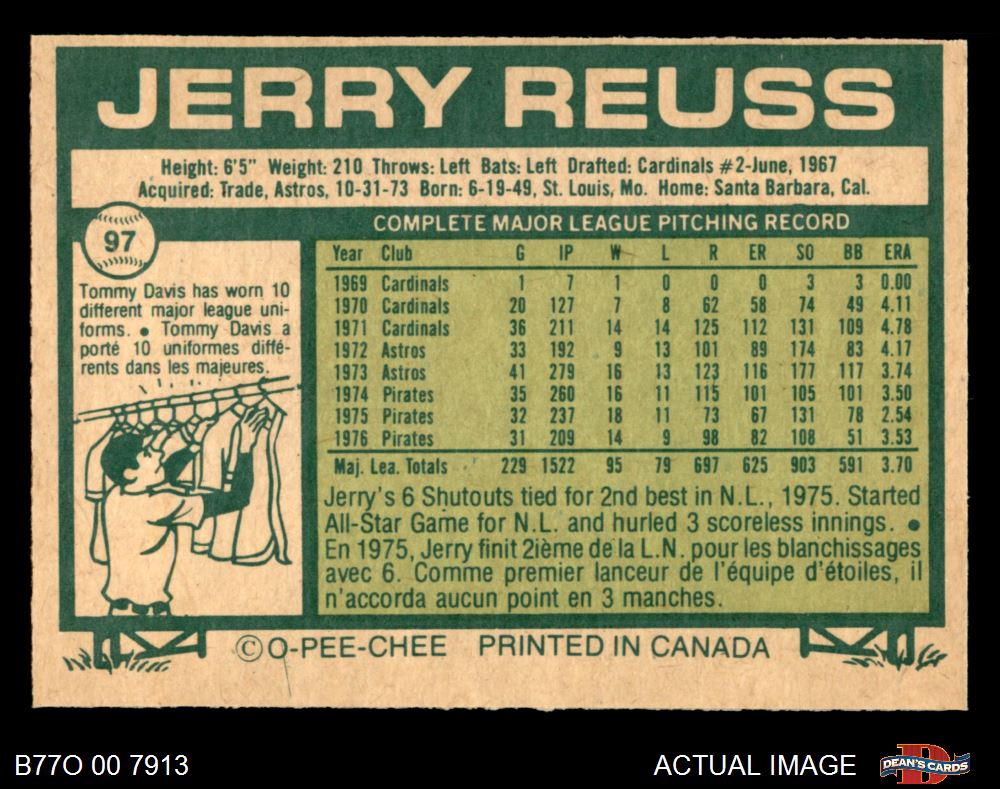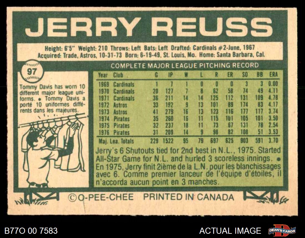 1977 O-Pee-Chee #97 Jerry Reuss 4 - VG/EX
