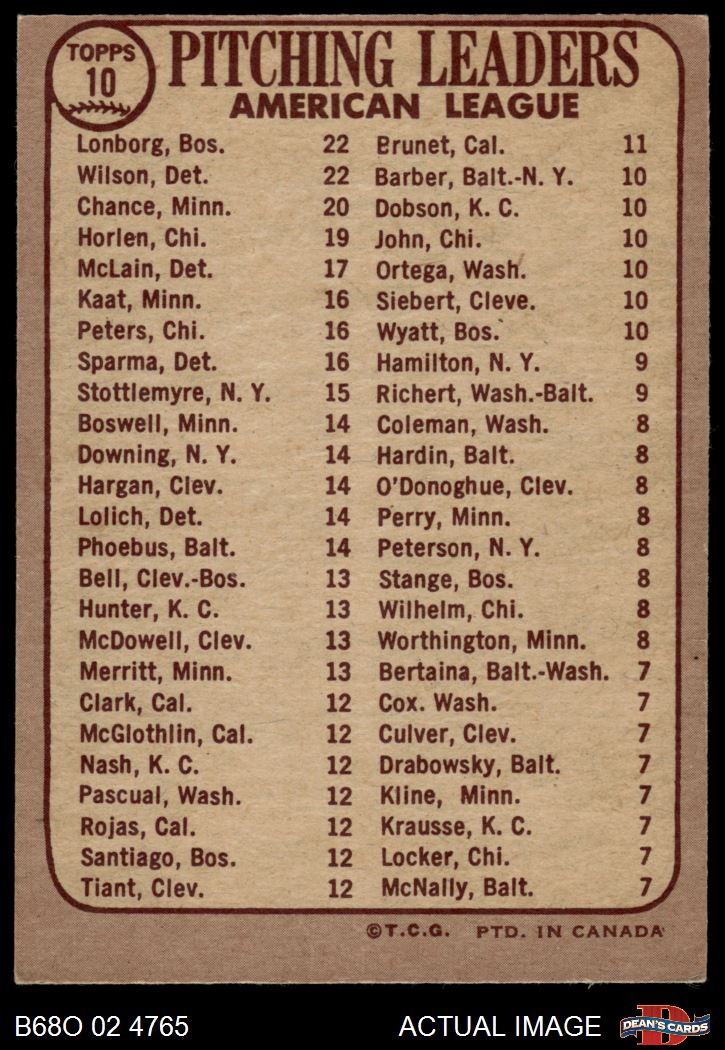 1968 O-Pee-Chee #10 COR AL Pitching Leaders