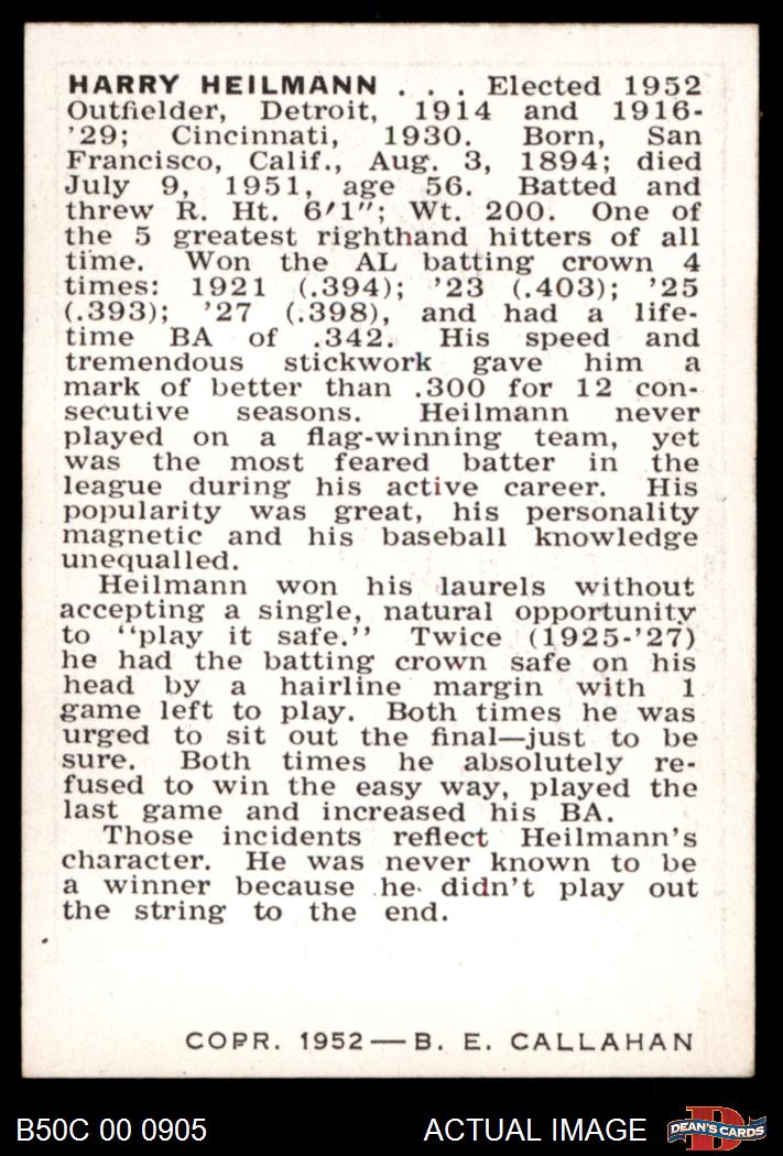 1950 Callahan Hall of Fame B Harry Heilmann 6 - EX/MT