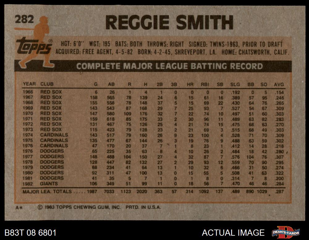 1983 Topps #282 Reggie Smith 8 - NM/MT