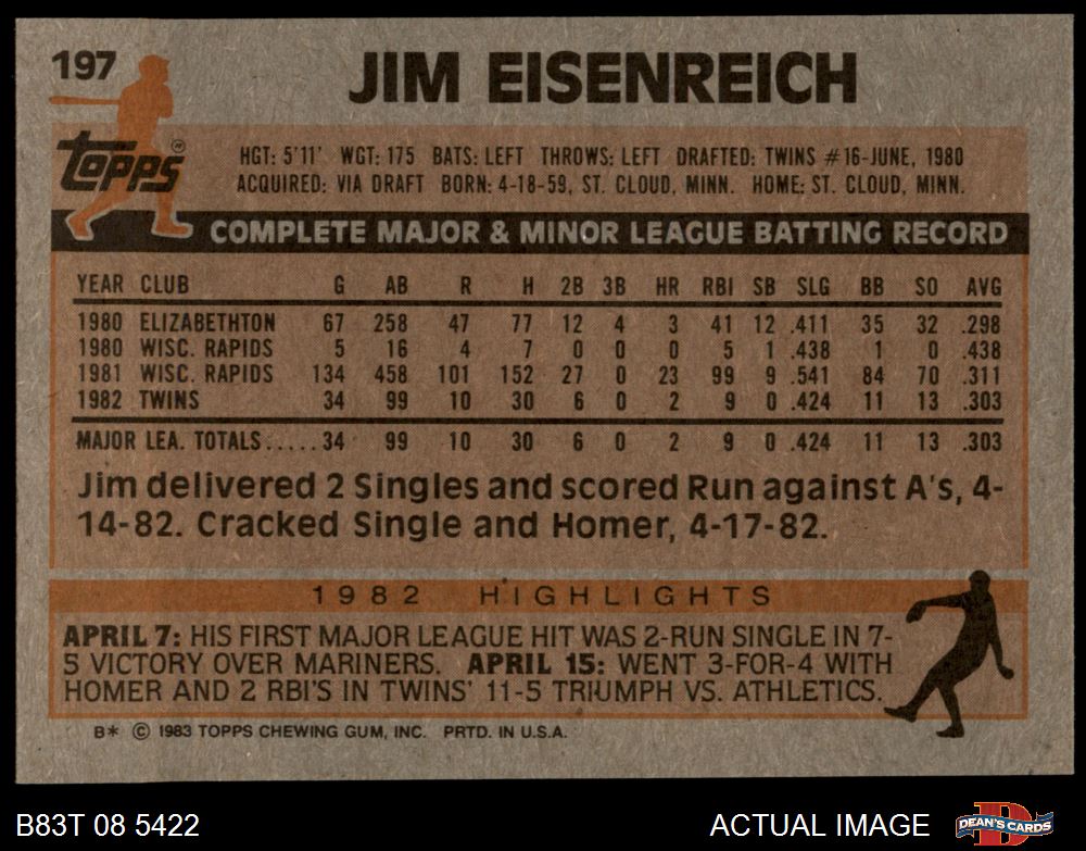 1983 Topps #197 Jim Eisenreich 8 - NM/MT