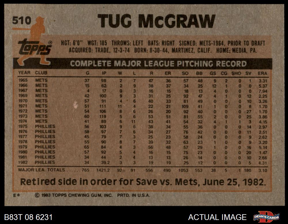 1983 Topps #510 Tug McGraw 8 - NM/MT