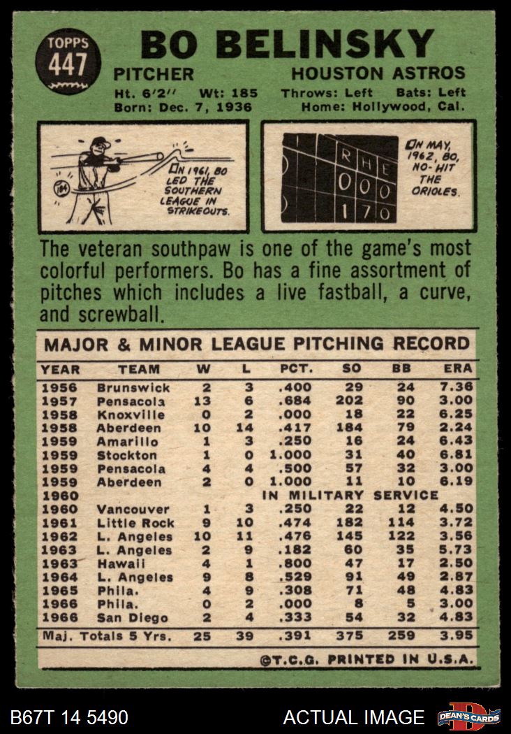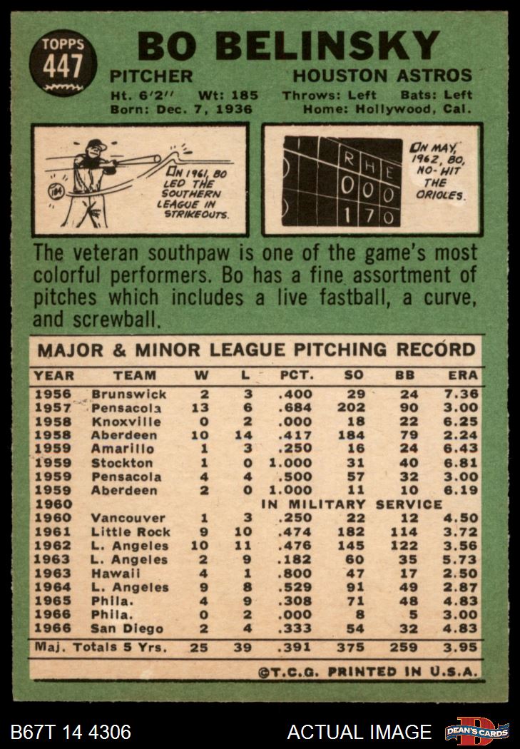 1967 Topps #447 ALL Bo Belinsky 5 - EX