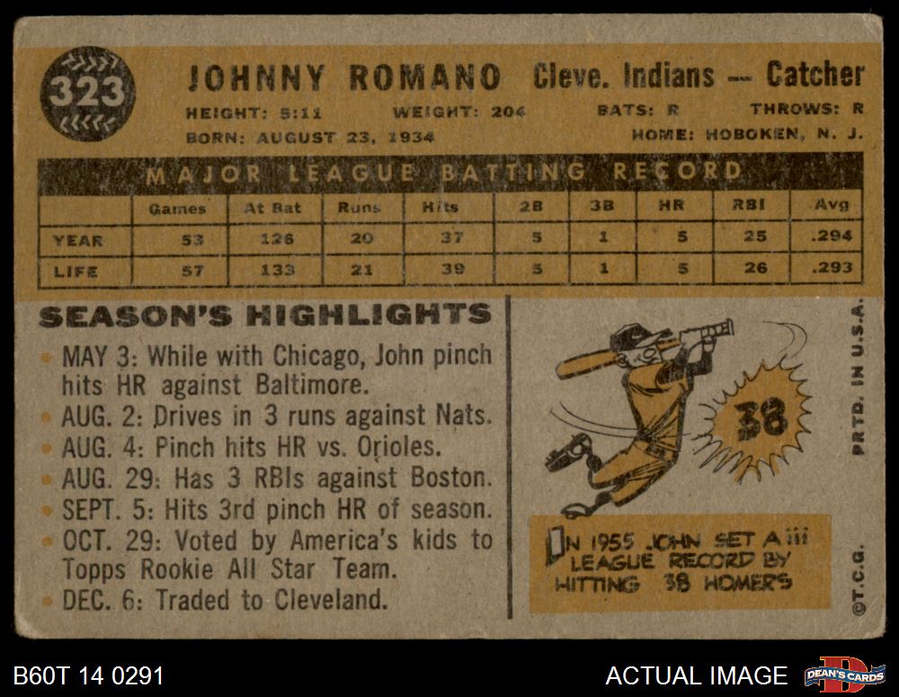 1960 Topps #323 John Romano 2 - GOOD