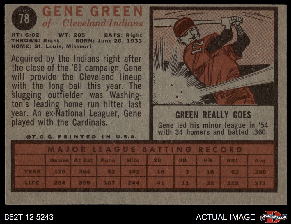 1962 Topps #78 Gene Green 4 - VG/EX
