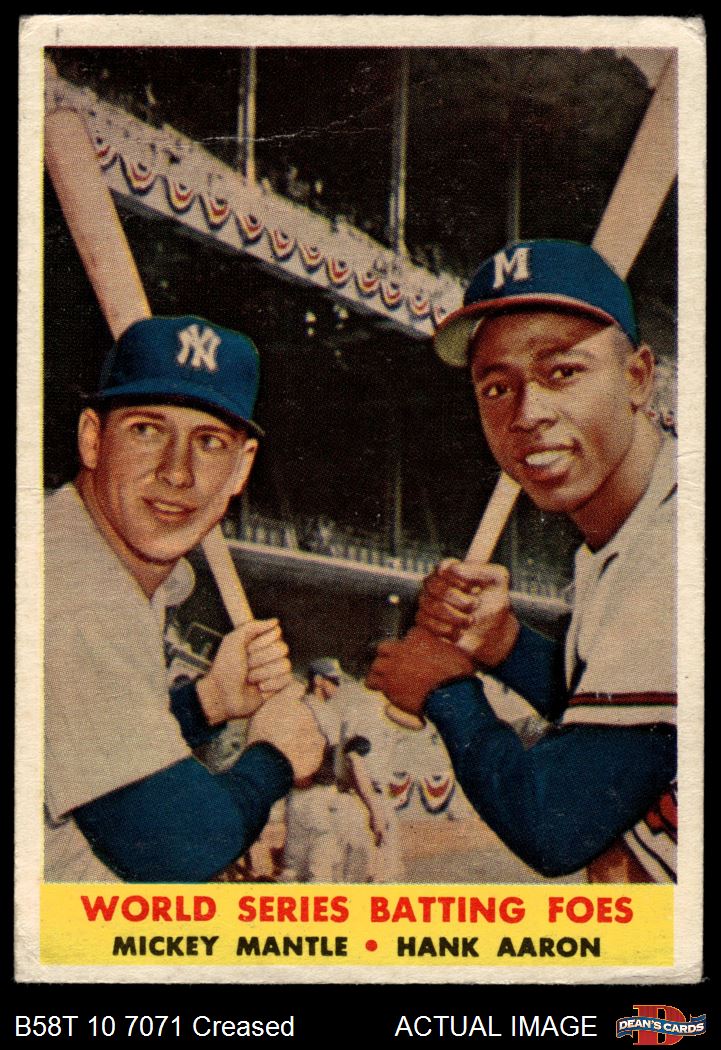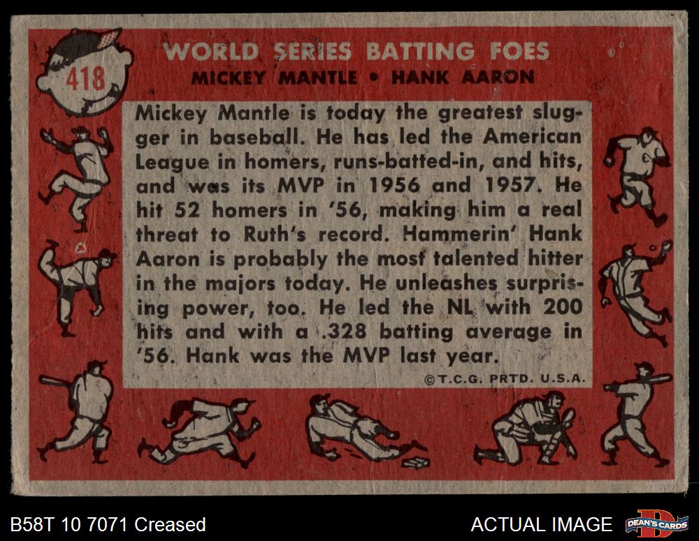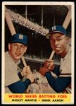 1958 Topps #418 - Mickey Mantle / Hank Aaron World Series Batting Foes 2 - GOOD