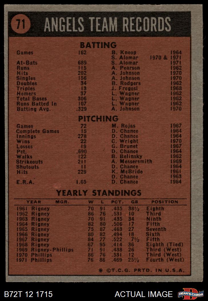 1972 Topps #71 Angels Team 5 - EX
