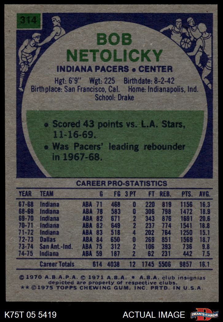 1975 Topps #314 Bob Netolicky 6 - EX/MT