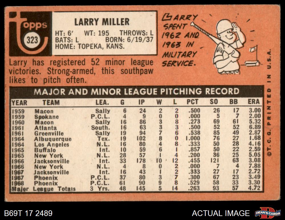 1969 Topps #323 Larry Miller 2 - GOOD