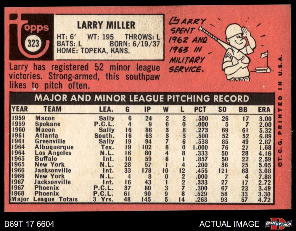 1969 Topps #323 Larry Miller 5 - EX