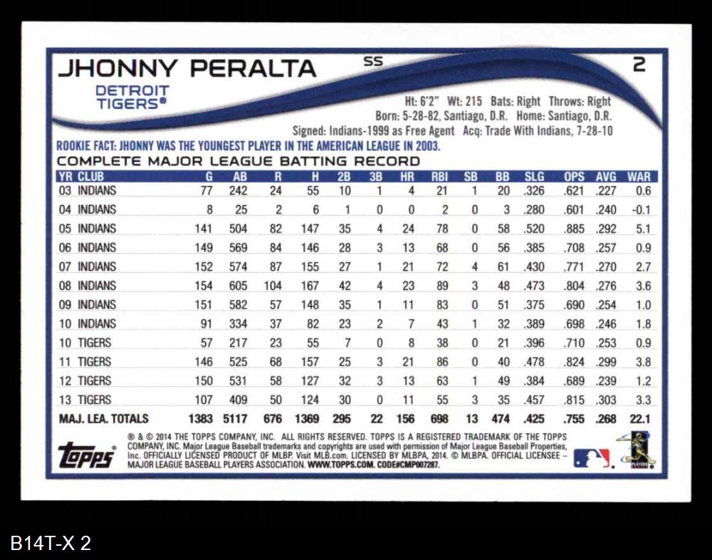 2014 Topps #2 Jhonny Peralta