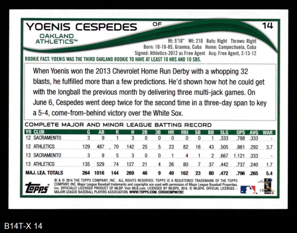 2014 Topps #14 Yoenis Cespedes