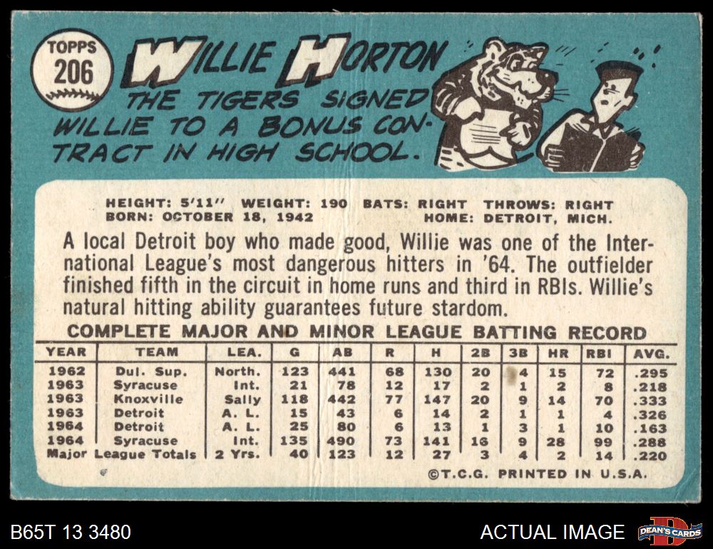 1965 Topps #206 Willie Horton 1.5 - FAIR