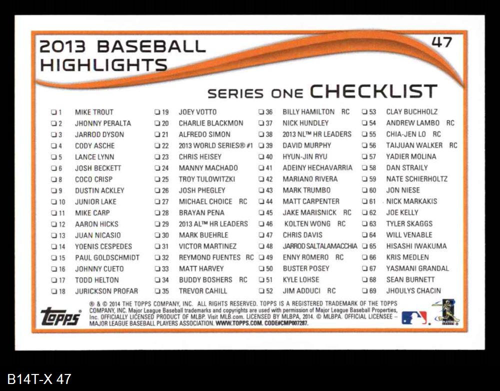 2014 Topps #47 Checklist 1 - Baseball Highlights