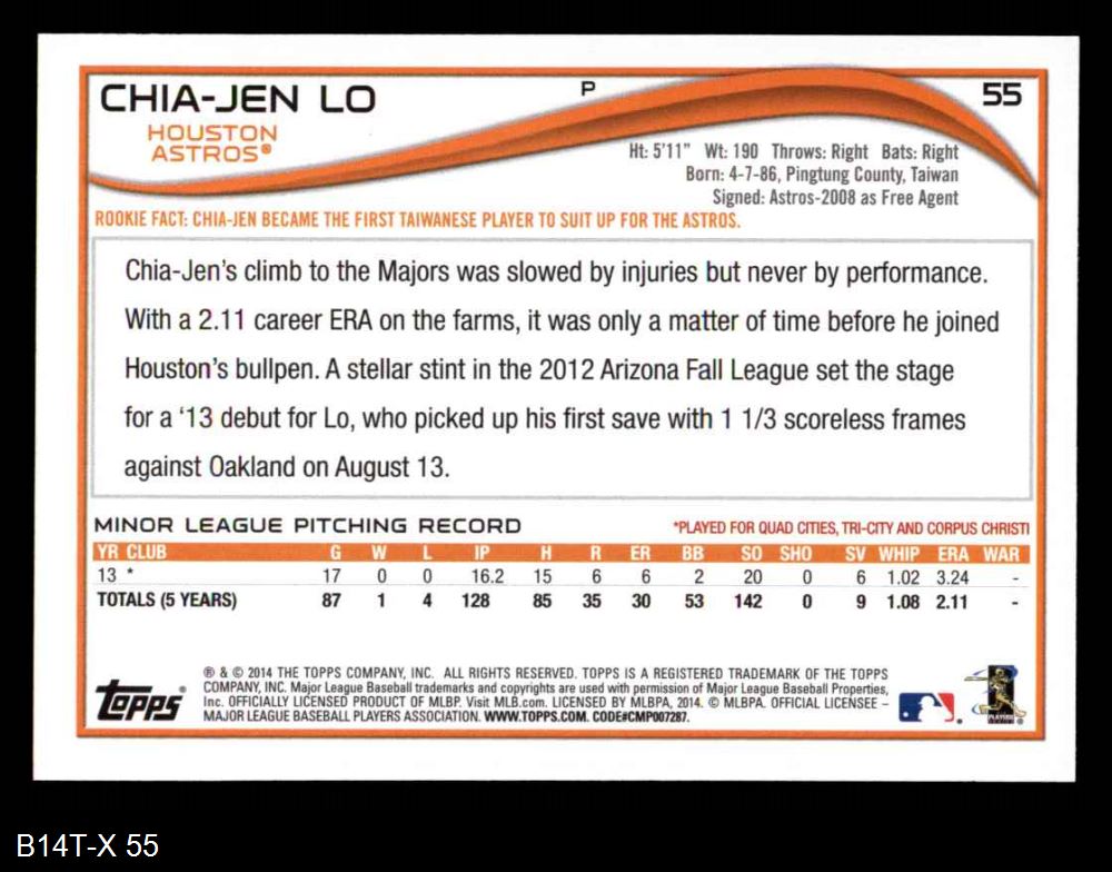 2014 Topps #55 Chia-Jen Lo 8 - NM/MT