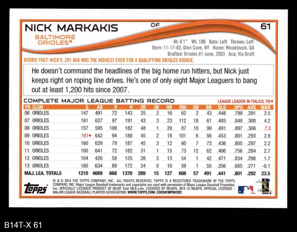 2014 Topps #61 Nick Markakis 8 - NM/MT