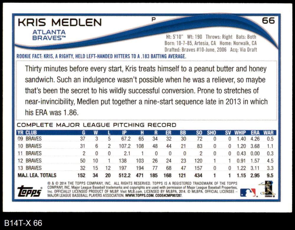 2014 Topps #66 Kris Medlen 8 - NM/MT