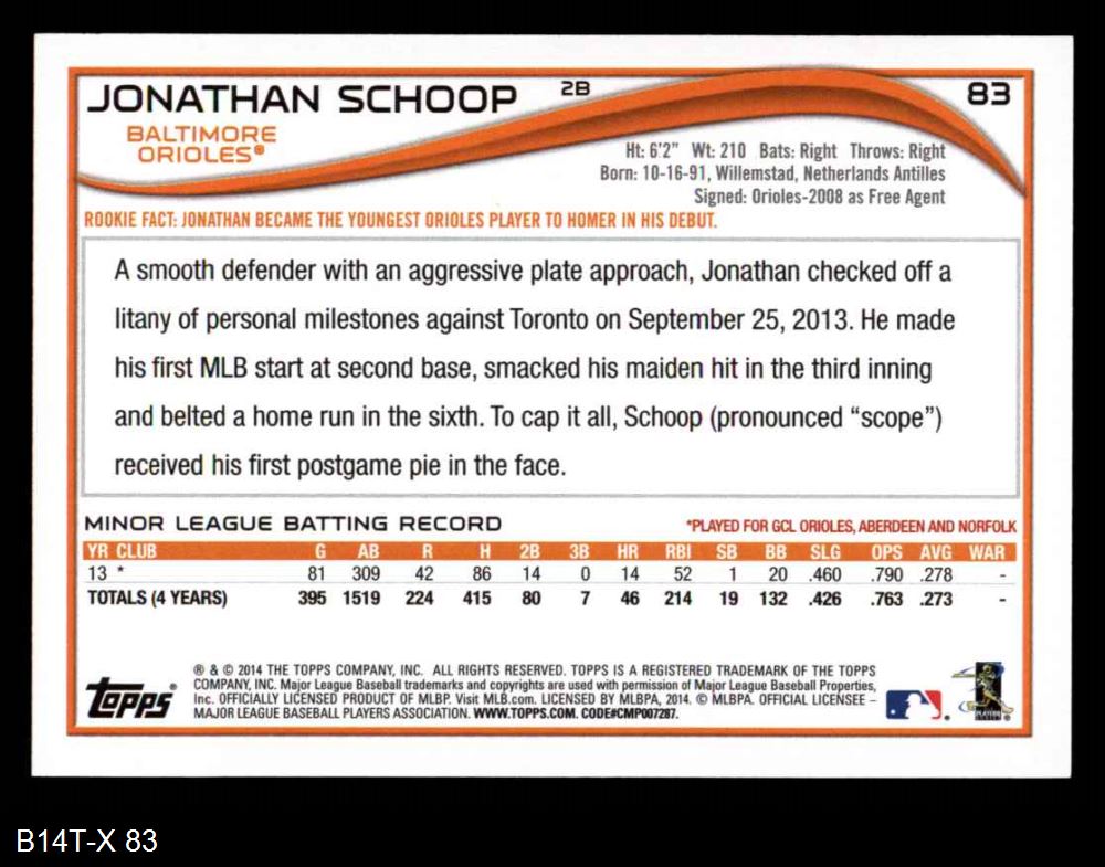 2014 Topps #83 Jonathan Schoop 8 - NM/MT