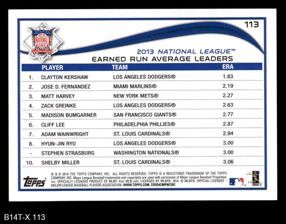 2014 Topps #113 - Clayton Kershaw / Jose Fernandez / Matt Harvey NL ERA Leaders 8 - NM/MT