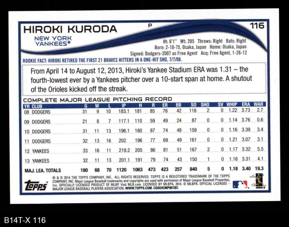 2014 Topps #116 Hiroki Kuroda 8 - NM/MT
