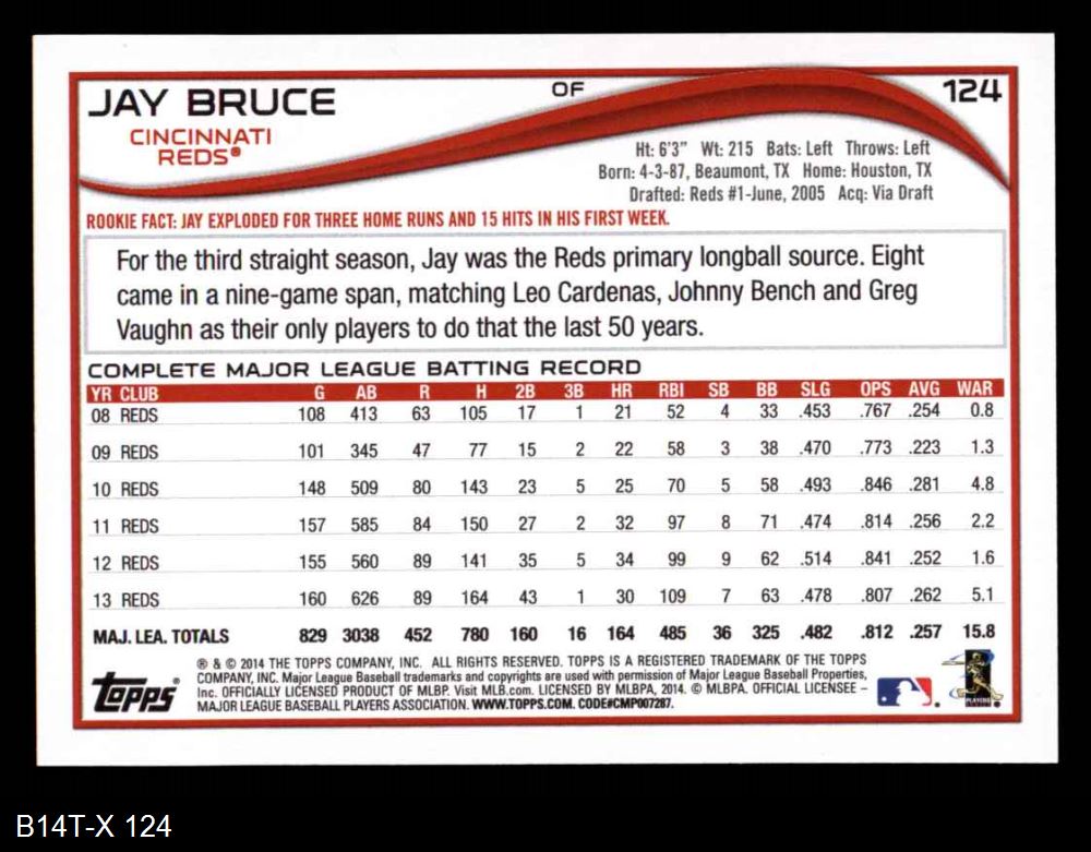 2014 Topps #124 Jay Bruce 8 - NM/MT