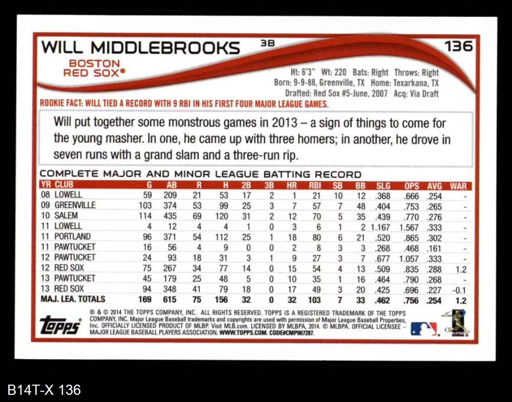 2014 Topps #136 - Will Middlebrooks Future Stars 8 - NM/MT