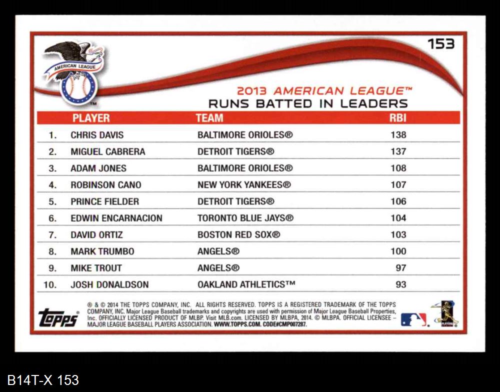 2014 Topps #153 - Chris Davis / Miguel Cabrera / Adam Jones AL RBI Leaders 8 - NM/MT