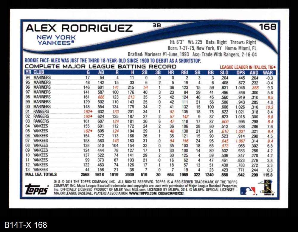 2014 Topps #168 Alex Rodriguez 8 - NM/MT