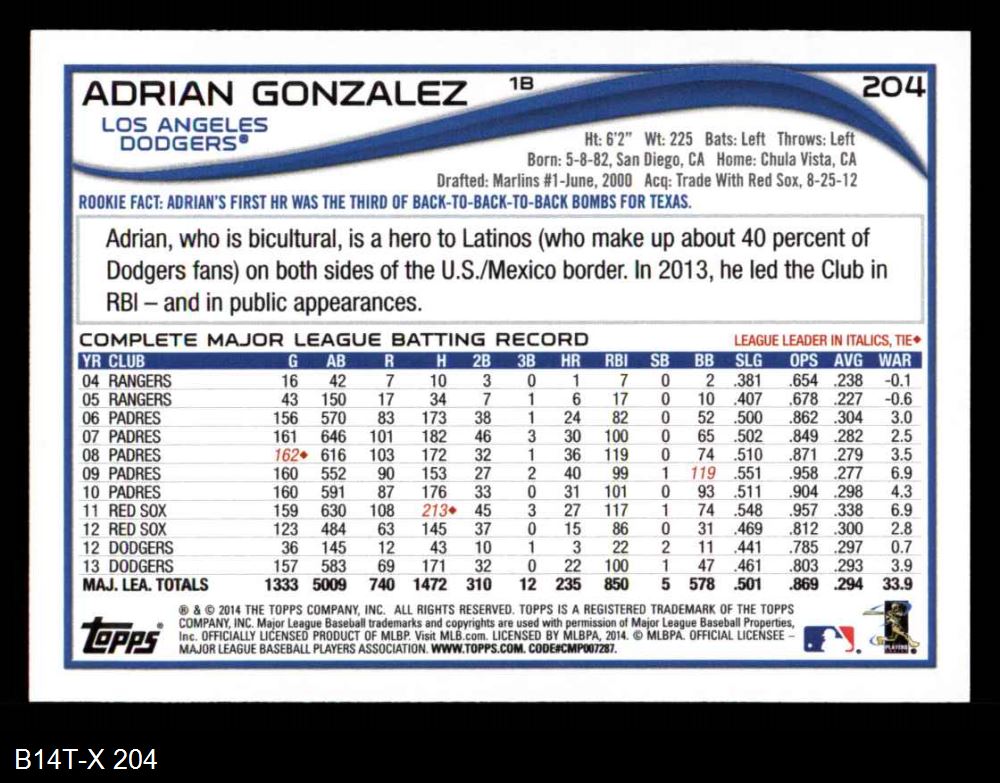 2014 Topps #204 Adrian Gonzalez 8 - NM/MT