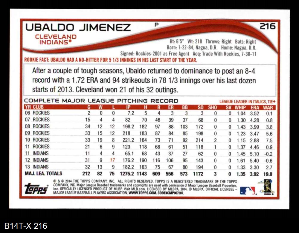 2014 Topps #216 Ubaldo Jimenez 8 - NM/MT
