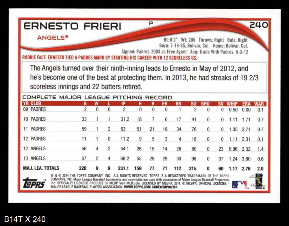 2014 Topps #240 Ernesto Frieri 8 - NM/MT