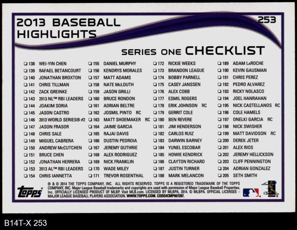 2014 Topps #253 Checklist 4 - Baseball Highlights