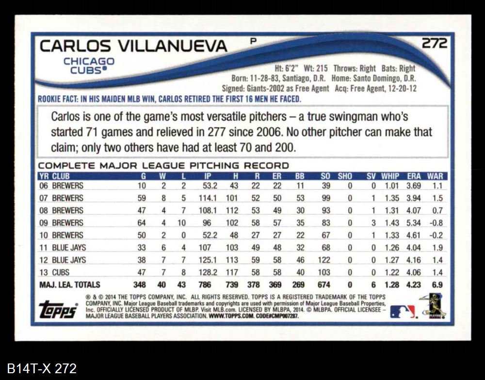 2014 Topps #272 Carlos Villanueva