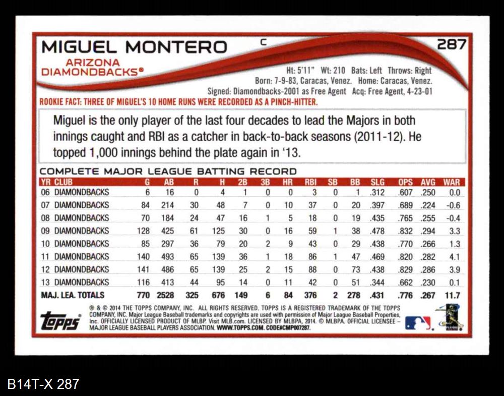 2014 Topps #287 Miguel Montero 8 - NM/MT