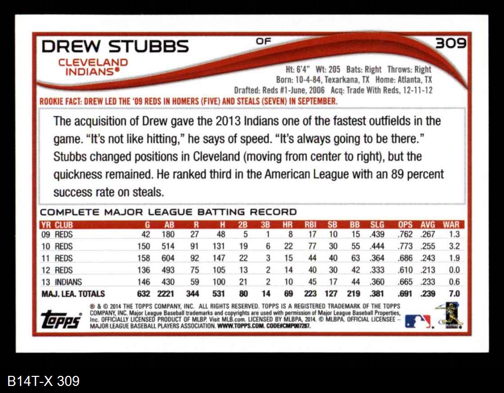 2014 Topps #309 Drew Stubbs 8 - NM/MT