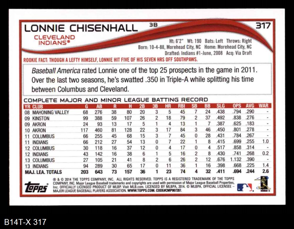 2014 Topps #317 Lonnie Chisenhall