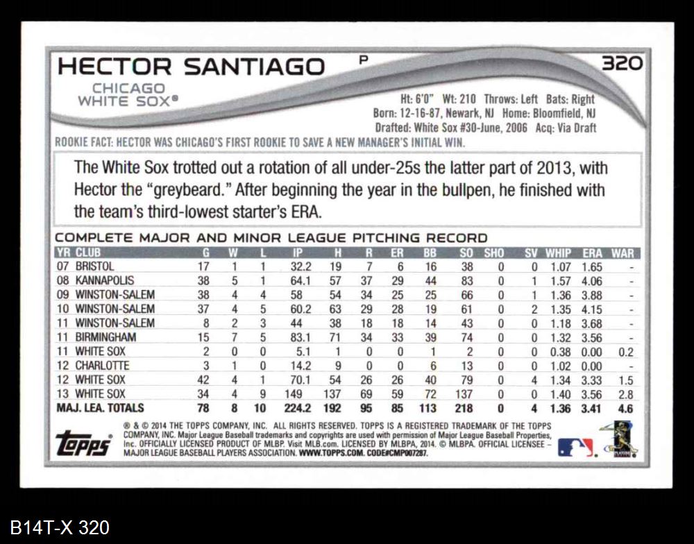2014 Topps #320 Hector Santiago 8 - NM/MT