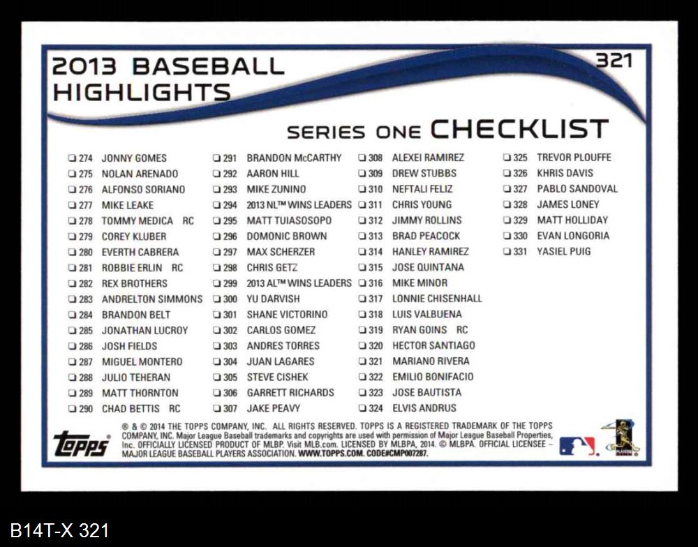 2014 Topps #321 Checklist 5 - Baseball Highlights