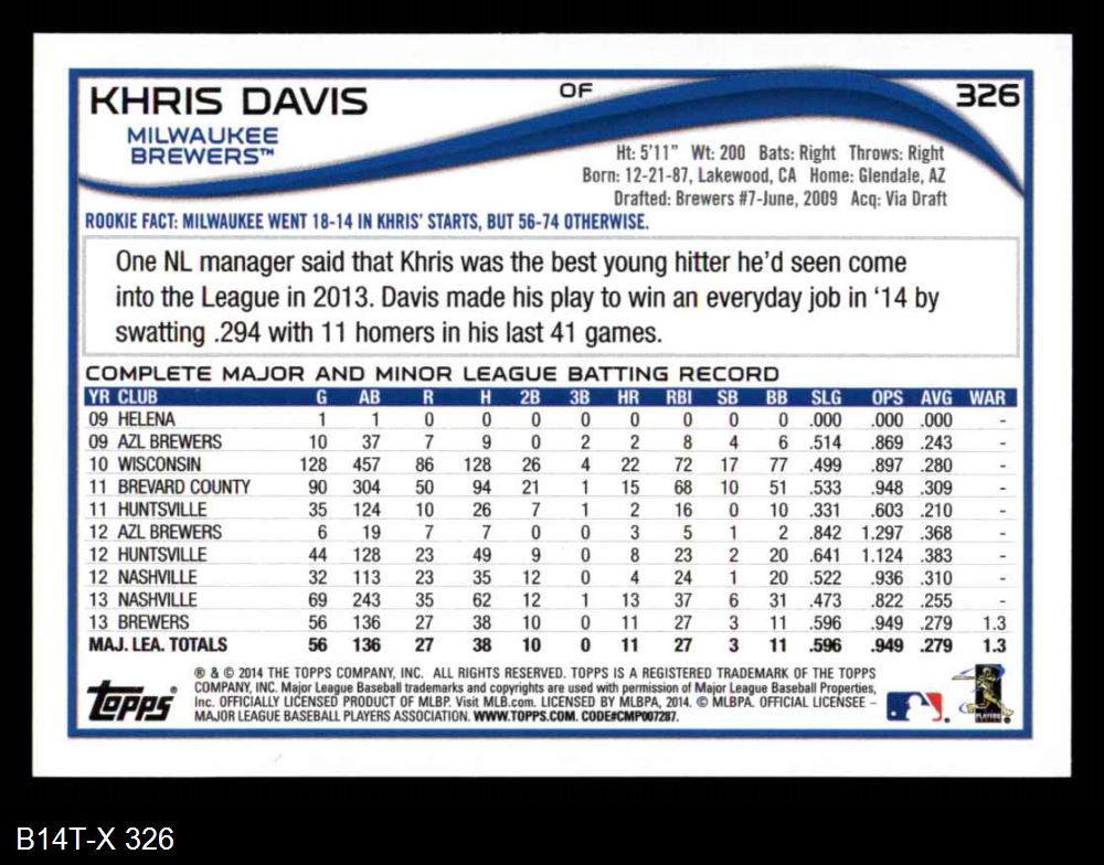 2014 Topps #326 Khris Davis