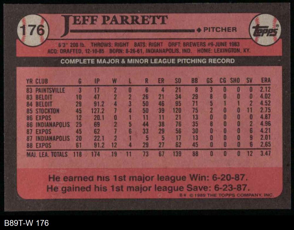 1989 Topps #176 Jeff Parrett 8 - NM/MT