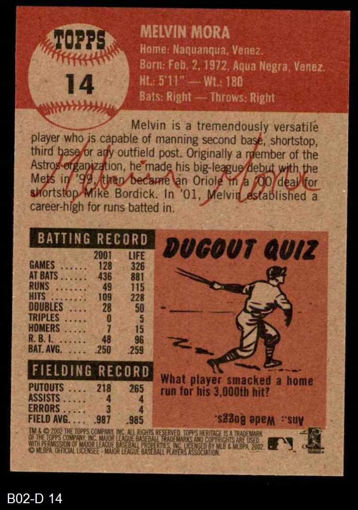2002 Topps Heritage Baseball Cards (1,396 available)2002 Topps Heritage Orioles (21 available)