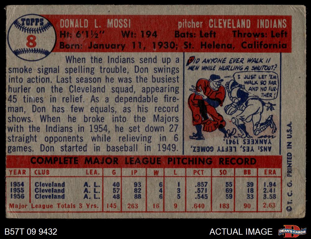 1957 Topps #8 Don Mossi 2 - GOOD