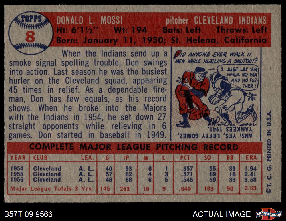 1957 Topps #8 Don Mossi 4 - VG/EX