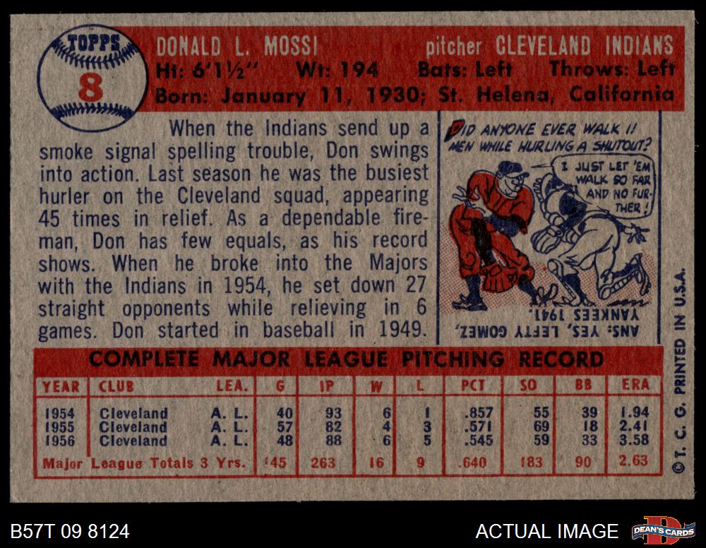 1957 Topps #8 Don Mossi 6 - EX/MT