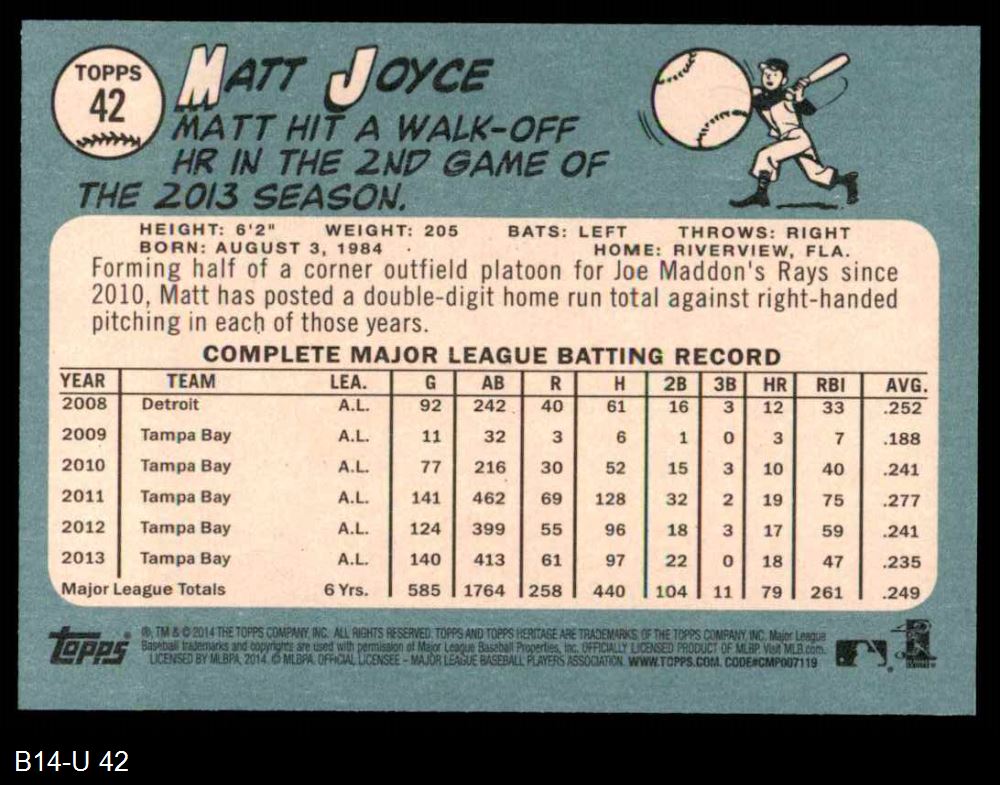 2014 Topps Heritage #42 Matt Joyce