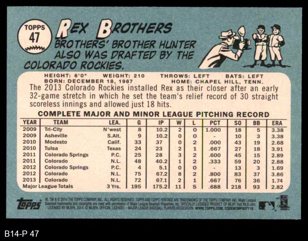 2014 Topps Heritage #47 Rex Brothers 8 - NM/MT