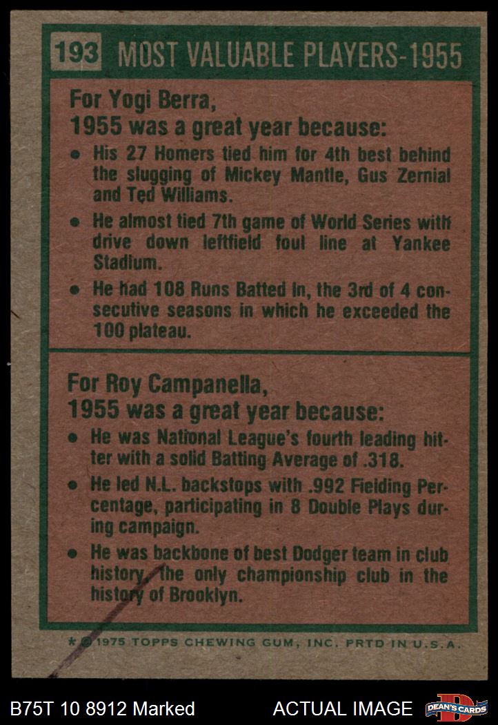 1975 Topps #193 - Yogi Berra / Roy Campanella 1955 MVPs 1.5 - FAIR