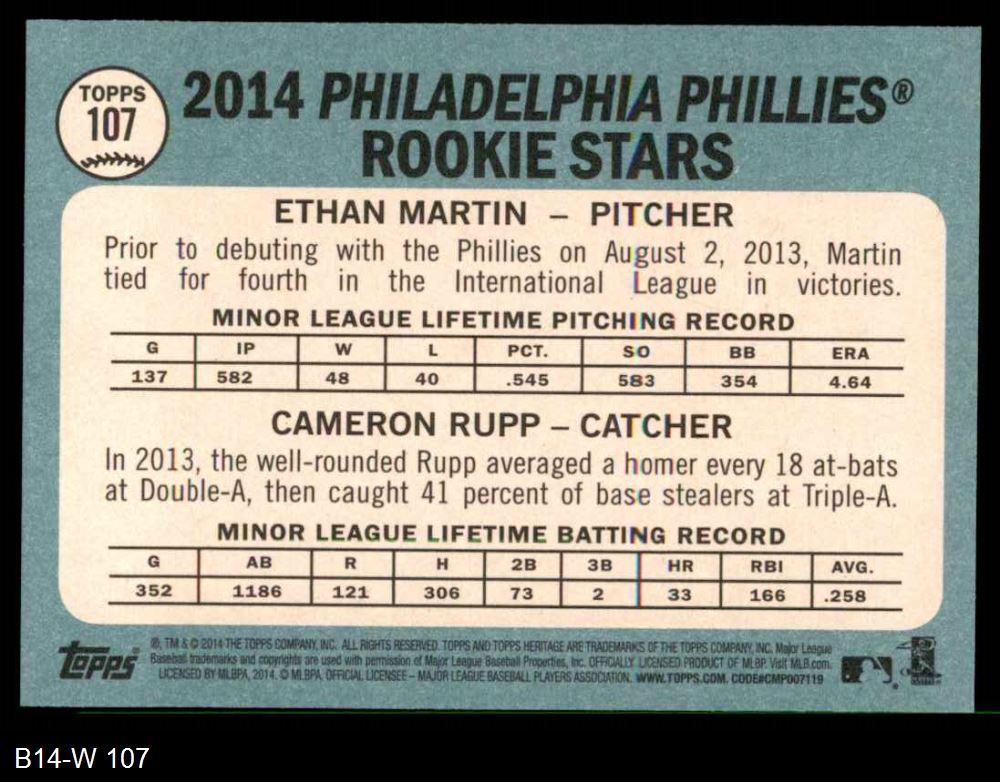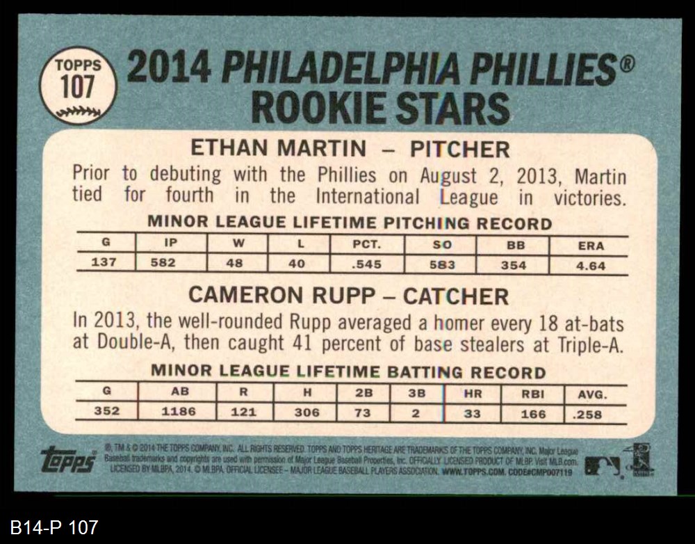 2014 Topps Heritage #107 - Ethan Martin / Cameron Rupp Phillies Rookies 8 - NM/MT