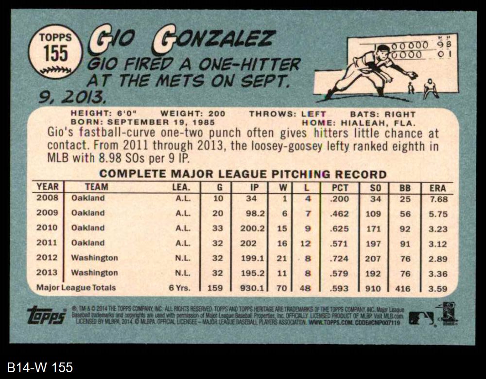 2014 Topps Heritage #155 Gio Gonzalez