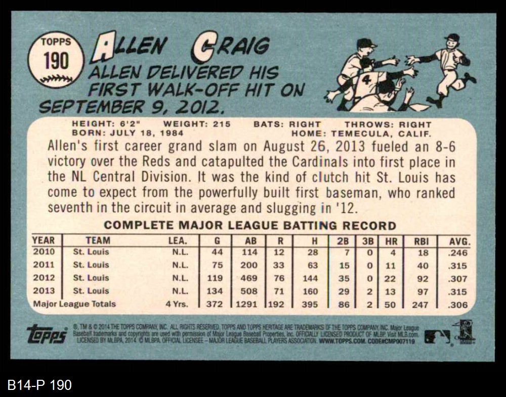 2014 Topps Heritage #190 Allen Craig 8 - NM/MT